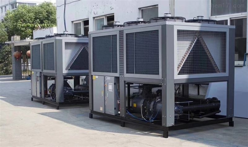 风冷工业冷水机提供制冷,采用风扇做为散热,通常采用翅片式的冷凝器,翅片其实是指铝片,即是需要换热的部位采用外部安装铝片,以达到散热,再通过风扇将热气抽出。